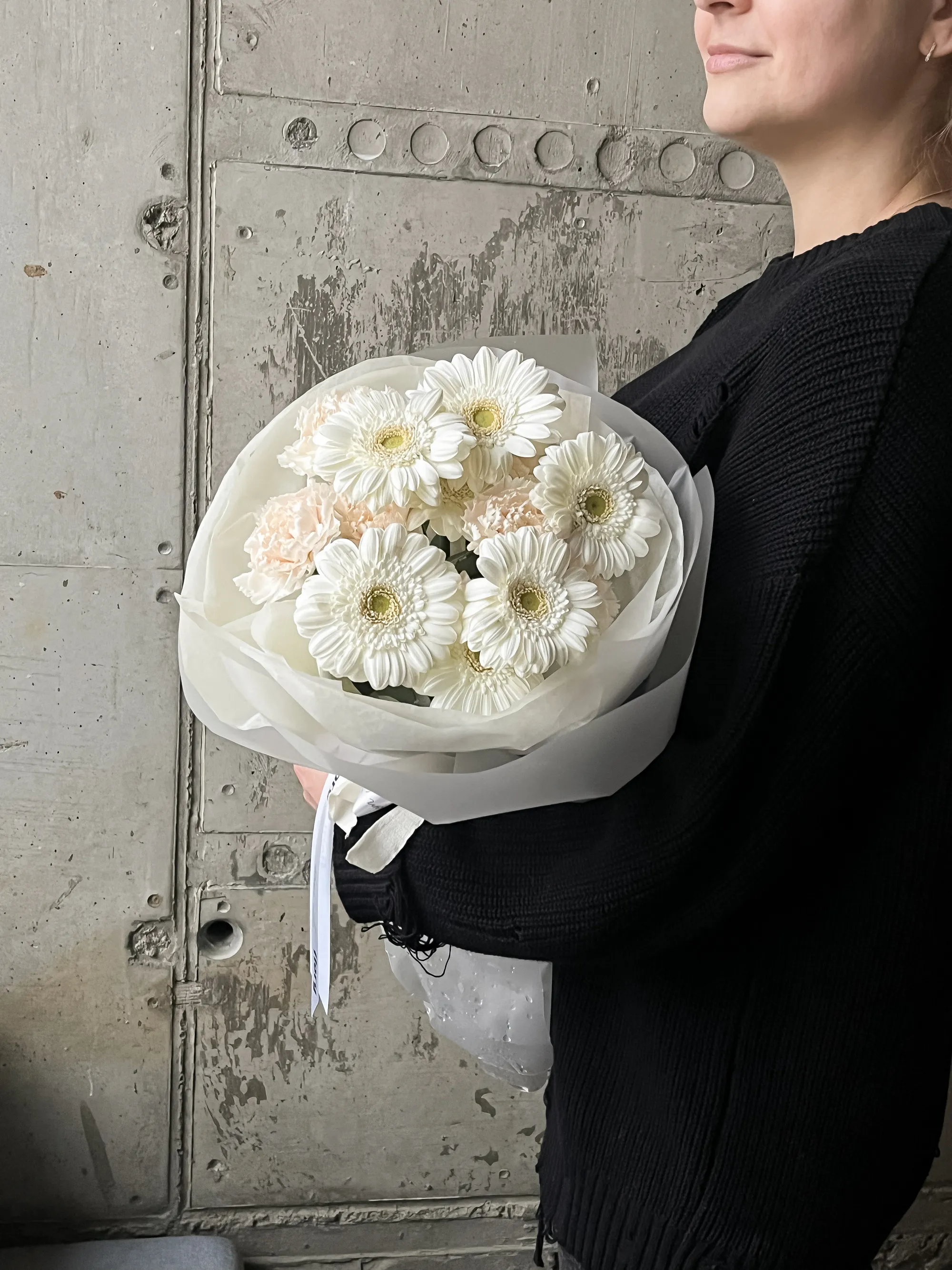Внимание: букет содержит сезонные цветы, которые могут быть заменены на идентичные по форме и цвету.