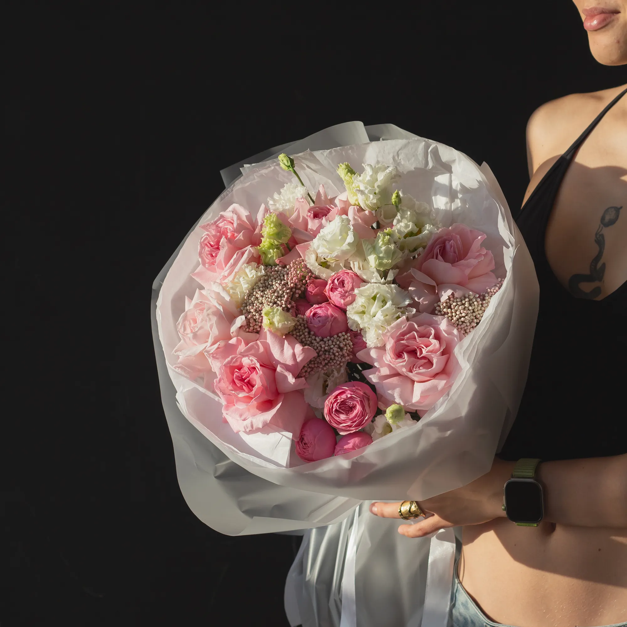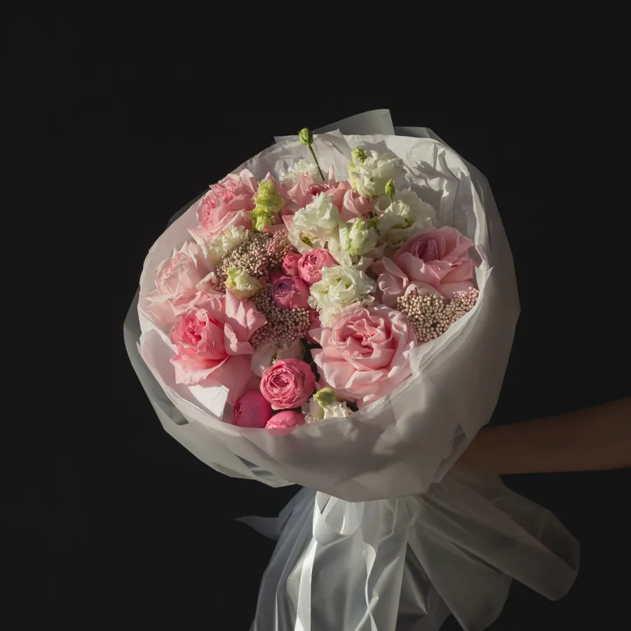 Внимание: букет содержит сезонные цветы, которые могут быть заменены на идентичные по форме и цвету.