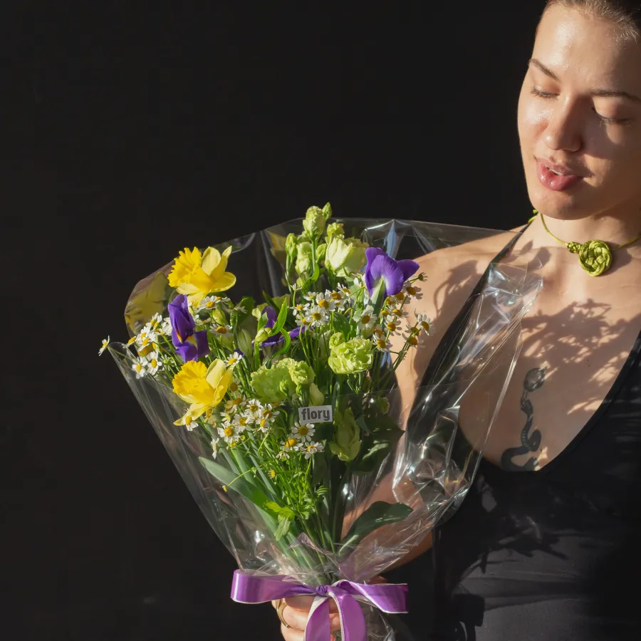 Внимание: букет содержит сезонные цветы, которые могут быть заменены на идентичные по форме и цвету.