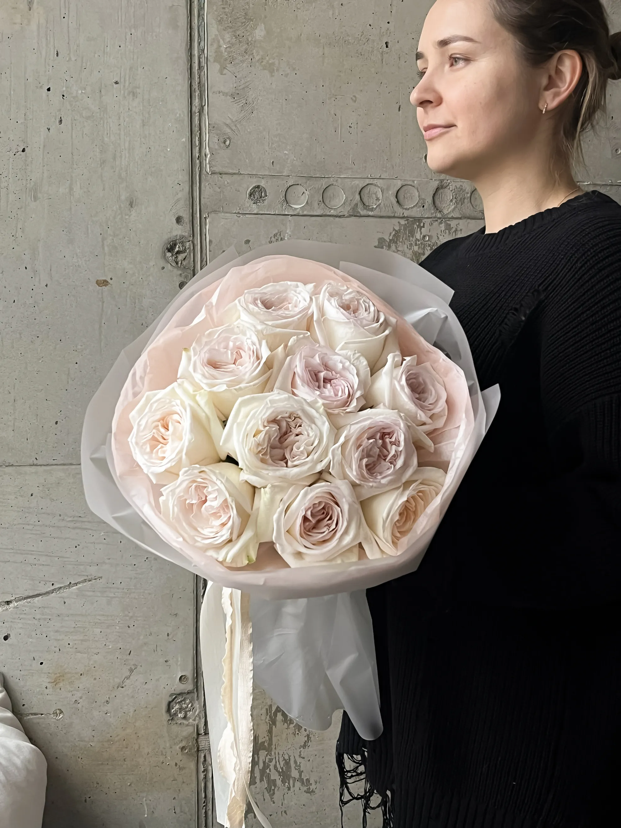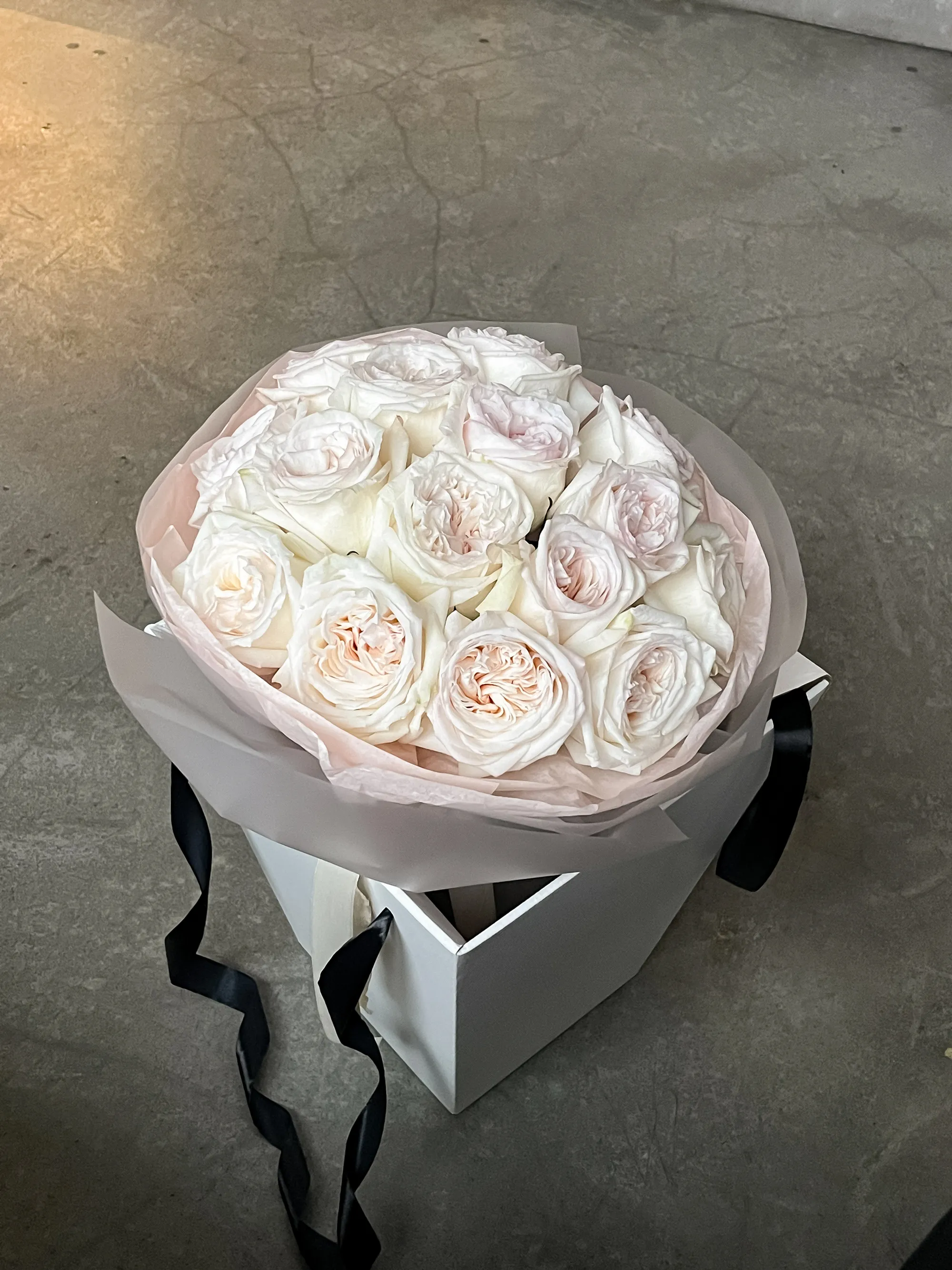 Монобукет ароматной пионовидной розы "Вайт Охара 15"