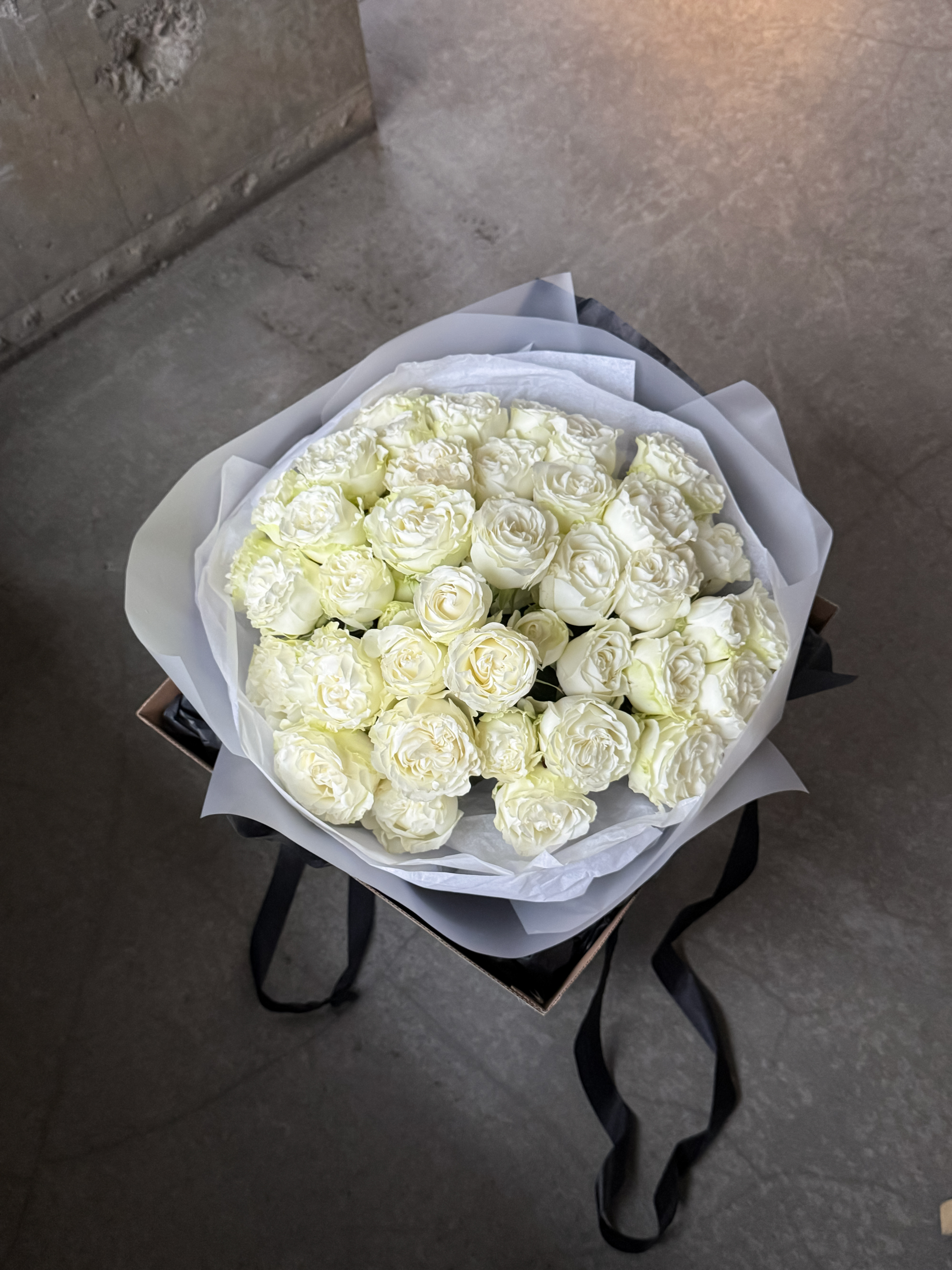 Внимание: букет содержит сезонные цветы, которые могут быть заменены на идентичные по форме и цвету.