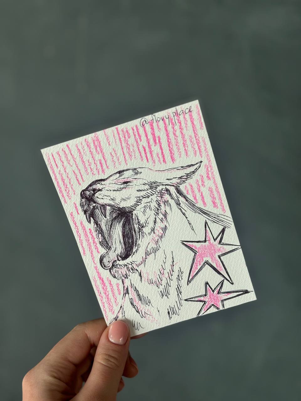 —Открытка ручной работы "Розовая тигра"